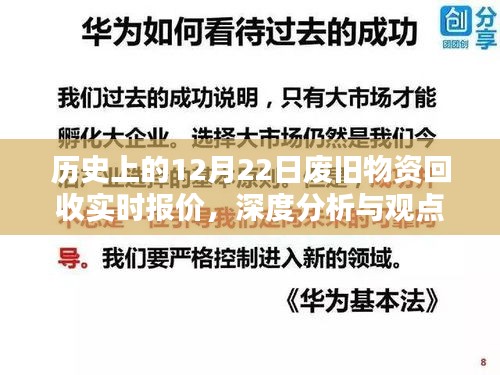 历史上的12月22日废旧物资回收实时报价是市场动态发展的体现,也是资源价值和环保意识提升的标志,我们应该以更加开放和灵活的态度面对市场的变化,鼓励废旧物资回收行业的健康发展,并通过政策支持和监管措施促进其规模化、规范化发展,只有这样,我们才能真正实现资源的有效利用和环境的保护,推动社会的可持续发展。