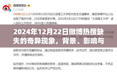 在数字化信息时代,微博热搜作为一种网络文化现象,早已深入人心,它不仅是大众获取最新信息的重要途径,也是观察社会热点、舆论风向的窗口,就在2024年12月22日这一天,一个奇特的现象发生了——微博没有实时热搜,这一天的微博热搜榜上,原本应该快速更新、反映社会热点的内容似乎集体消失了,取而代之的是一种前所未有的平静。