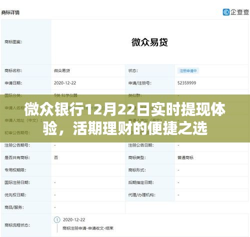 随着科技的进步和互联网的普及,越来越多的人开始关注理财,而活期理财因其高流动性和便捷性备受青睐,微众银行作为一家领先的互联网银行,其提供的活期理财服务更是受到广大用户的喜爱,我们将重点关注微众银行在12月22日的实时提现体验,带大家深入了解这一服务的特点和优势。