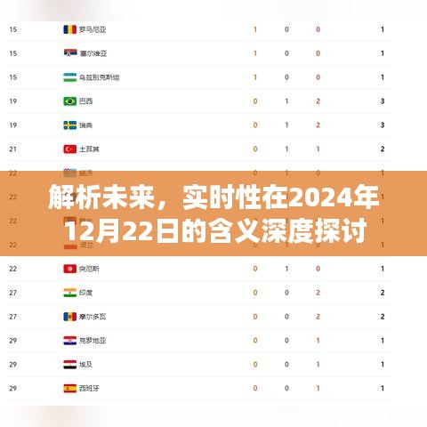 随着科技的飞速发展和数字化时代的推进,实时性已成为我们生活中不可或缺的一部分,针对未来的一个时间点——2024年12月22日,实时性的含义将如何演变?本文将就此展开讨论,探讨实时性在未来可能的意义和内涵。
