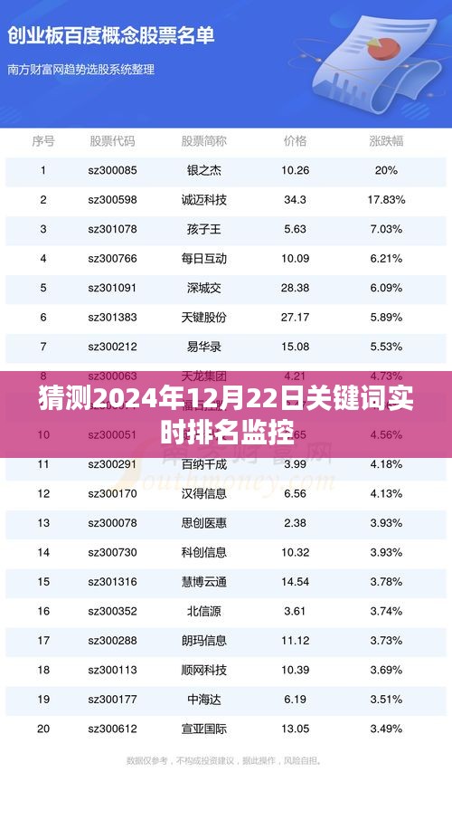 随着互联网的普及和搜索引擎技术的不断发展,关键词实时排名监控已成为企业和个人了解市场动态、优化推广策略的重要手段,本文将围绕猜测2024年12月22日关键词实时排名监控这一主题,探讨关键词监控的重要性、方法以及未来趋势。