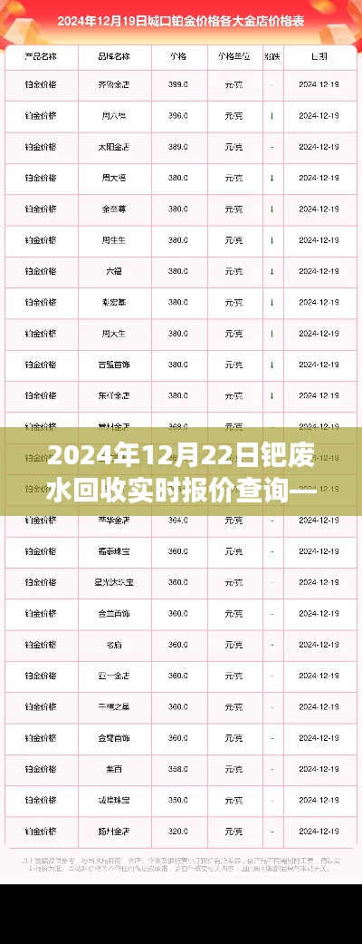 随着科技的进步和工业的发展,稀有金属的需求日益增加,钯,作为一种重要的贵金属,广泛应用于汽车、电子、航空航天等领域,本文将重点关注2024年12月22日的钯废水回收实时报价,帮助读者了解钯市场状况,掌握回收行情。
