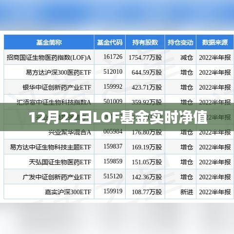 随着金融市场的不断发展和创新,基金产品日益丰富,其中LOF基金因其独特的优势受到广大投资者的青睐,本文将重点关注12月22日的LOF基金实时净值,为投资者提供有关信息,以便更好地把握市场动态和投资机会。