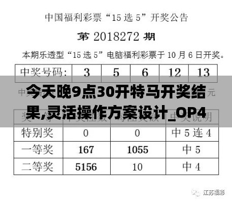 <p>彩票开奖,这一随机性极强的活动,吸引了无数彩民的关注与期待,尤其是今晚9点30分的特马开奖,更是牵动着广大彩民的心弦,他们怀揣着梦想,希望通过精心设计的灵活操作方案,在开奖结果中占据一席之地,本文将深入分析特马开奖结果,为彩民提供具有前瞻性的灵活操作方案设计思路与建议。</p>