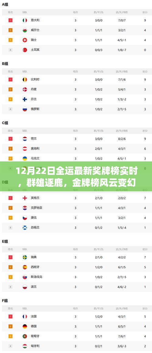 随着冬季运动的盛行,全运会的热度也在不断升温,12月22日,全运最新奖牌榜实时更新,各大代表队的表现令人瞩目,在这场体育盛事中,各路英雄豪杰各显神通,金牌榜上的排名风云变幻,让人目不暇接。