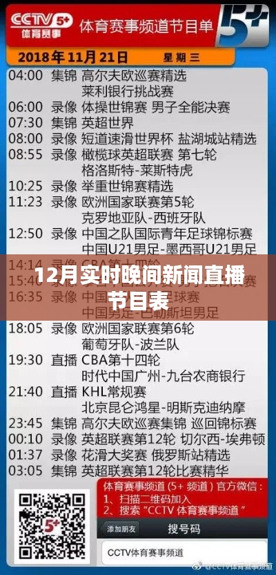 便是今晚的《12月实时晚间新闻直播节目表》,在这个信息时代,我们致力于为您提供最新、最快、最全面的新闻资讯,请继续关注我们的节目,共同关注世界的变化,晚安,祝您度过一个美好的夜晚!