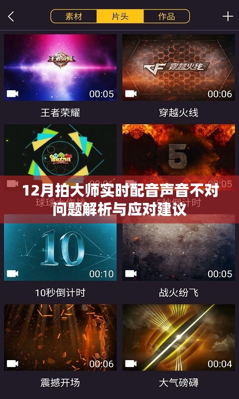 用户在拍大师软件中进行实时配音时,发现声音与画面不匹配,表现为声音延迟、音画错位等现象,这种问题在12月份尤为突出,影响了用户的正常操作。