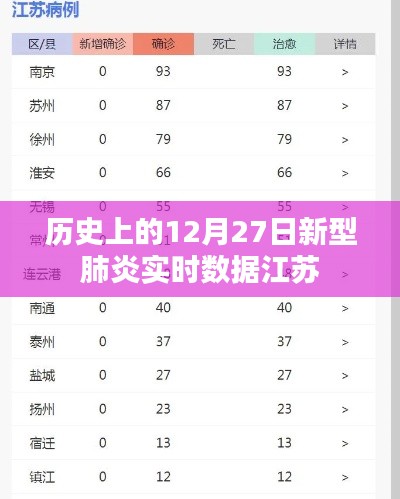 每年的12月27日,对于全球抗击新型肺炎疫情而言,都是一个值得纪念的日子,在这一时刻,我们回顾过去,关注江苏地区的新型肺炎实时数据,以期更好地应对未来挑战,本文将为您呈现历史上的12月27日江苏新型肺炎疫情概况、数据分析及应对策略。