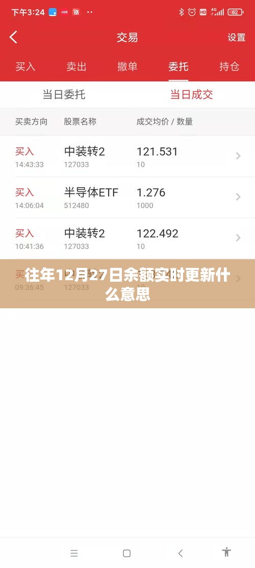 随着科技的飞速发展和互联网的普及,我们的生活越来越离不开数字化,在金融领域,实时更新余额已成为一种常态,往年12月27日余额实时更新是什么意思呢?本文将围绕这一主题展开讨论,帮助读者更好地理解实时更新余额的概念及其重要性。