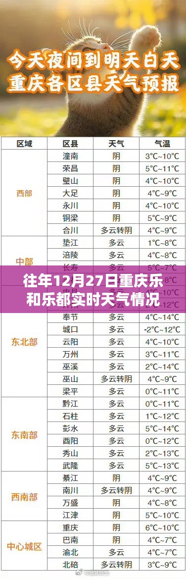 重庆乐和乐都,作为重庆市的一个重要旅游景点,每年都吸引着大量游客前来观光游玩,对于计划前往的游客来说,了解目的地的天气情况是非常重要的,本文将为大家详细介绍往年12月27日重庆乐和乐都的实时天气情况,以便大家做好出行准备。