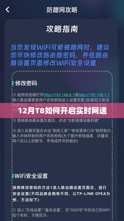 通过本文的介绍,你应该已经了解了如何在12月使用T8手机时开启实时网速功能,在使用过程中,请注意节省电量和流量,并根据实际情况调整网络设置,希望这些建议能帮助你更好地管理网络使用,享受更快速的网络体验,如有更多疑问或问题,欢迎咨询专业人士或查阅相关手机操作指南。