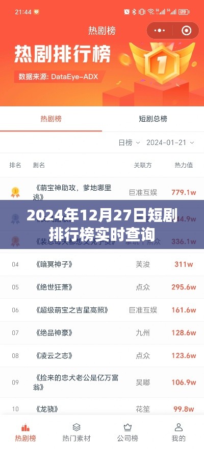 2024年12月27日的短剧排行榜上,众多优秀作品竞相绽放,这些短剧在类型、题材、表演等方面都呈现出多样化的特点,满足了不同观众的观看需求,随着网络技术和移动设备的进一步发展,短剧行业将迎来更加广阔的发展空间,我们期待更多优秀的短剧作品问世,为观众带来更多的娱乐和享受。