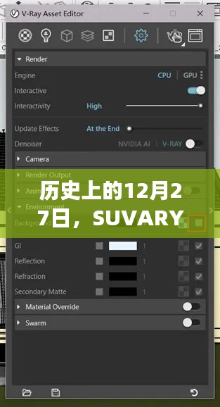 历史上的12月27日可能涉及到许多重要事件,这些事件或许与科技发展、社会变革等方面有关,而在当代科技领域,SUVARY作为一款广泛应用于设计、建模等领域的软件工具,其实时渲染功能为用户提供了更加逼真的视觉效果,在某些情况下,用户可能需要关闭这一功能以达到节省资源、降低系统负担等目的。
