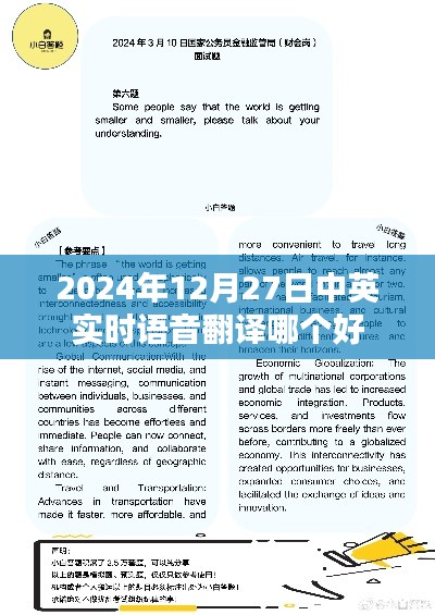 随着全球化的不断发展,中英实时语音翻译技术在我们的日常生活、商务交流以及国际旅行中扮演着越来越重要的角色,到了2024年12月27日,随着科技的进步,中英实时语音翻译已经取得了长足的发展,那一天市场上的中英实时语音翻译哪个好呢?本文将从准确性、交互性、易用性以及未来发展潜力等方面进行对比分析。