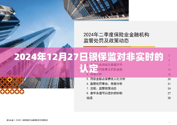 随着金融科技的不断发展和创新,银行业与保险业的融合日益加深,为确保金融市场的稳健运行,保护消费者权益,银保监会(中国银行保险监督管理委员会)持续加强对银行业和保险业的监管,非实时交易的监管是重要一环,本文将围绕2024年12月27日银保监对非实时的认定展开讨论,阐述相关概念和监管要求。