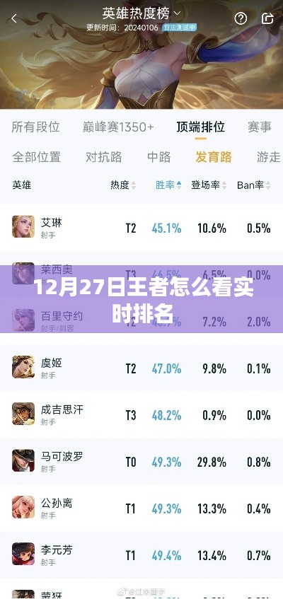 在12月27日,玩家可以通过以下几种方式查看王者实时排名: