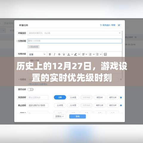 历史上的每一个日期都承载着丰富的故事和事件,而今天我们要探讨的是那些发生在12月27日的重要事件和游戏设置实时优先级的时刻,随着科技的进步,游戏产业不断发展壮大,实时优先级设置对于游戏体验的重要性日益凸显,让我们一起走进这些历史时刻,探寻游戏发展的足迹。