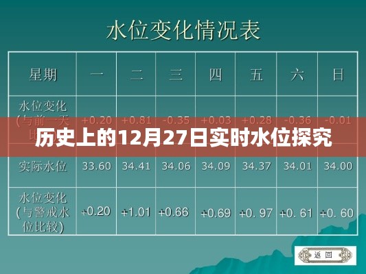 本文将探讨历史上的12月27日实时水位情况,我们将从多个角度审视这一话题,包括历史文献的记载、现代科技的应用以及实际观测数据的分析,通过深入了解过去的水位变化,我们可以更好地认识自然环境,为未来的水资源管理和防灾减灾提供借鉴。