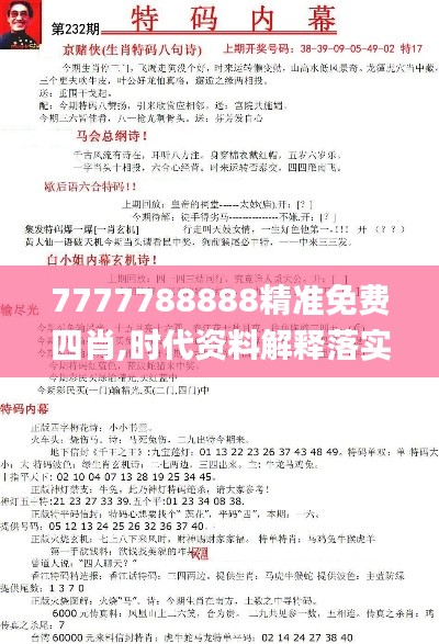 随着数字化时代的来临,数据的获取、管理和应用成为企业乃至个人日常生活中不可或缺的一部分,在这一背景下,“7777788888精准免费四肖”这一特定的数字序列,逐渐引起了人们的广泛关注,它不仅代表着一种特定的精准度和高效性,还可能关联着特定的数据库或资源,本文将通过时代资料的解释,深入剖析这一数字序列的含义及其背后所蕴含的价值。
