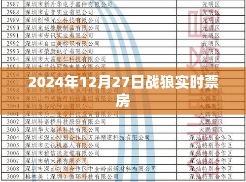 随着电影产业的飞速发展,观众们对于电影的热情日益高涨,动作片以其紧张刺激的剧情和视觉效果赢得了广大观众的喜爱,而《战狼》系列电影作为动作片的佼佼者,更是吸引了无数观众的目光,本文将聚焦于2024年12月27日《战狼》实时票房情况,带您领略这部电影的魅力。