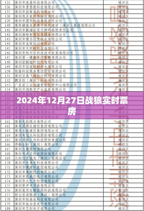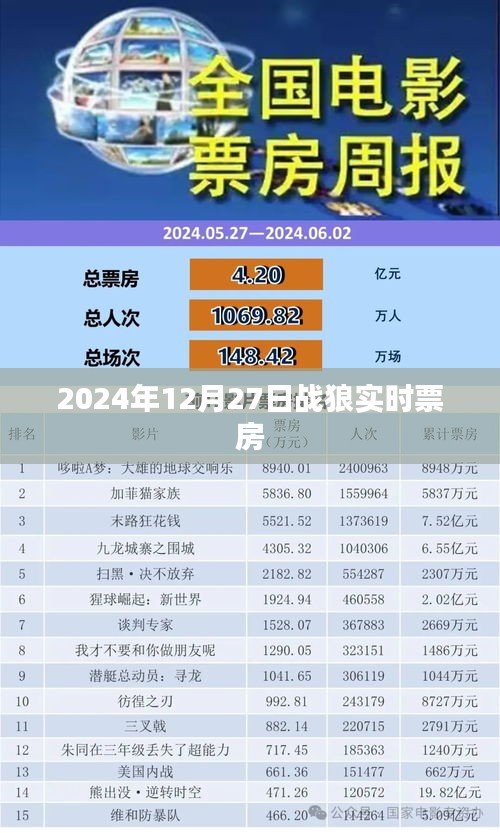 在2024年12月27日这一天,《战狼》的票房表现依然强劲,作为一部备受期待的电影,其在上映期间一直保持着高人气,据实时数据显示,《战狼》在这一天取得了惊人的票房成绩,再次证明了其在观众心中的地位。
