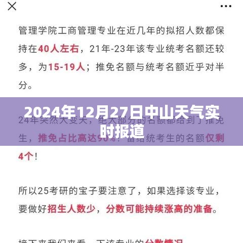 2024年12月27日中山市天气预报以多云为主,局部地区可能出现短暂降雨,市民需关注天气预报,做好防范措施,确保生活和工作不受影响,随着季节变化,市民需注意添衣保暖,预防感冒等疾病。