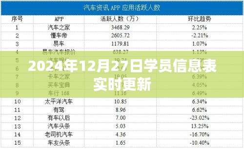 随着信息技术的快速发展,数字化管理已成为各行各业不可或缺的一部分,在教育培训领域,学员信息管理是一项重要的日常工作,本文将围绕“2024年12月27日学员信息表实时更新”这一主题展开讨论,介绍学员信息表更新的重要性、更新内容、更新流程以及可能面临的挑战和解决方案。