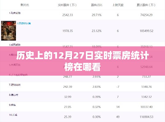 随着电影产业的飞速发展,观众们对于电影票房的关注也日益加深,在这其中,不少电影爱好者对于历史上的某一天,尤其是特殊日的电影票房数据产生了浓厚的兴趣,关于历史上的12月27日实时票房统计榜,我们应该如何查看呢?