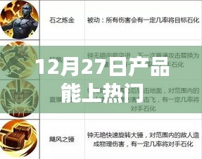 12月27日,我们的产品有望登上热门,这是我们的荣誉,也是我们的责任,我们将继续努力,为用户提供更优质、更创新的产品和服务,请广大用户继续关注我们的产品,相信我们会给您带来更好的体验!