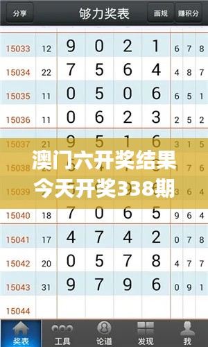 <p>对于澳门六开奖结果338期,存在一些预测系统和工具,帮助彩民分析和预测可能的开奖号码,这些系统基于大量的历史数据和统计学方法,通过深度分析和处理数据,提供有价值的预测信息,虽然无法保证百分之百的准确性,但这些预测系统为彩民提供了有价值的参考。</p>