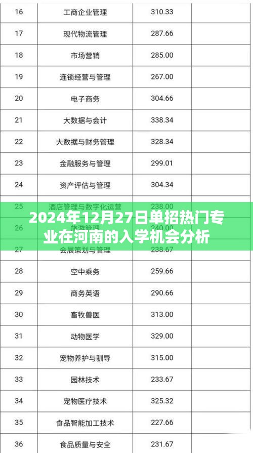 随着教育体制的不断改革和职业教育的发展,单招作为一种重要的招生方式,为广大考生提供了更多选择的机会,河南作为人口大省,教育资源的竞争尤为激烈,本文将围绕“2024年12月27日单招热门专业能否在河南顺利入学”的问题展开分析,帮助考生和家长更好地了解当前形势,做出明智的选择。