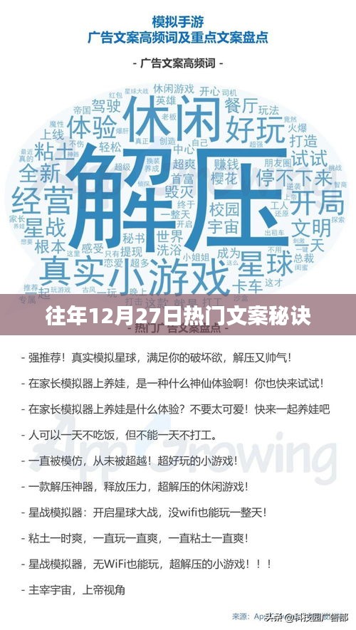 12月27日正值年终岁尾,人们在这个时候往往更加注重节日氛围和情感体验,文案应融入节日元素,传递温馨、喜庆的气氛,可以运用“新年倒计时”、“圣诞氛围”、“跨年狂欢”等词汇,激发消费者的购物热情。