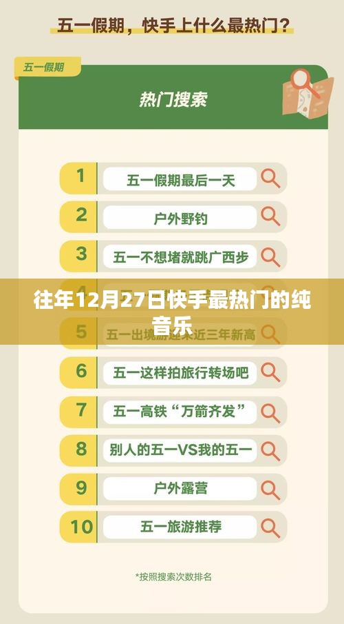 在往年12月27日,快手平台上的纯音乐因其优美的旋律、富有感染力的氛围以及与短视频的完美结合而走红,节日氛围、用户情感和社交传播等因素共同推动了这些音乐作品的流行,在未来,随着快手等短视频平台的不断发展,纯音乐在其中的作用将越来越重要,更多优秀的音乐作品将涌现出来。