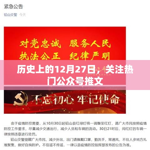 每年的十二月二十七日,都是一个值得纪念的日子,历史上的这一天,或许发生过重大事件,或许某些人物在这一天留下了深刻的足迹,随着社交媒体和网络的普及,我们可以通过各种公众号了解这一天的历史背景、事件和人物故事,本文将带你一起关注热门公众号推文,重温历史上的十二月二十七日。