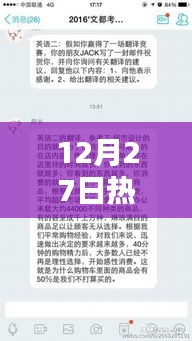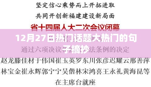 随着年末的脚步日益临近,每一天都充满了新鲜的话题和热议,特别是在这寒冷的冬季,人们更加关注身边的点点滴滴,分享彼此的心情和故事,本文将为你带来关于12月27日的热门话题中的热门句子摘抄,让我们一起感受这些充满魅力的文字。