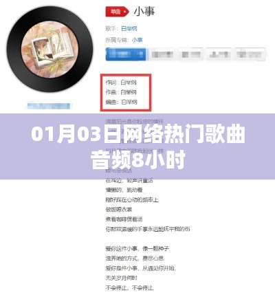 随着科技的飞速发展和互联网的普及,音乐已经渗透到我们生活的方方面面,网络歌曲以其独特的魅力和吸引力,成为了现代人生活中不可或缺的一部分,本文将为您呈现《01月03日网络热门歌曲音频8小时》的精彩内容,带您领略网络音乐的魅力。