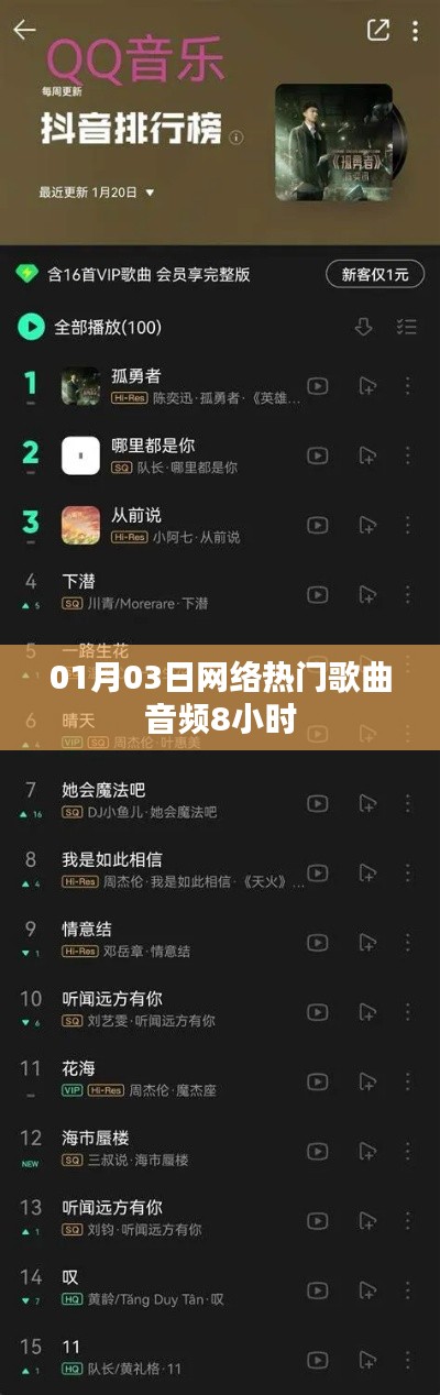 随着新的一年的到来,音乐界也迎来了新的热潮,在01月03日这一天,众多网络热门歌曲纷纷崭露头角,成为了人们热议的焦点,这些歌曲以其独特的旋律、富有感染力的歌词和优秀的演唱技巧,赢得了广大听众的喜爱,让我们一起聆听这8小时的网络热门歌曲音频,感受音乐的力量。