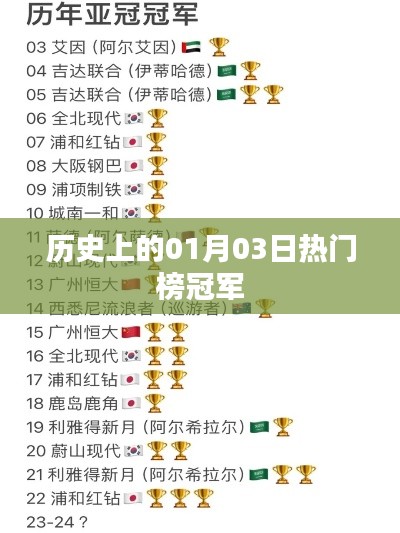 每年的日期都有其独特的意义和历史背景,而本文将聚焦于那些发生在每年的1月3日的重要事件和人物,特别是那些在热门榜上脱颖而出的冠军们,这些冠军可能是政治领袖、文化偶像、体育英雄或科技先驱,他们的成就和影响力在这一天达到了巅峰,本文将带领读者走进这些历史人物的辉煌时刻,回顾他们的辉煌历程。