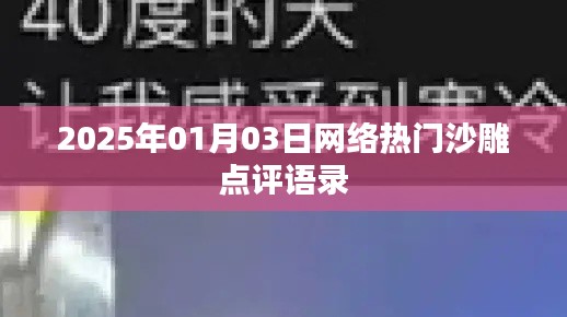 随着互联网的普及和社交媒体的兴起,网络热门沙雕点评语录成为了人们日常生活中的一部分,它们以幽默诙谐的方式,反映了人们对于各种事物独特的看法和感受,本文将带你走进2025年1月3日的网络热门沙雕点评语录世界,感受其中的乐趣与智慧。