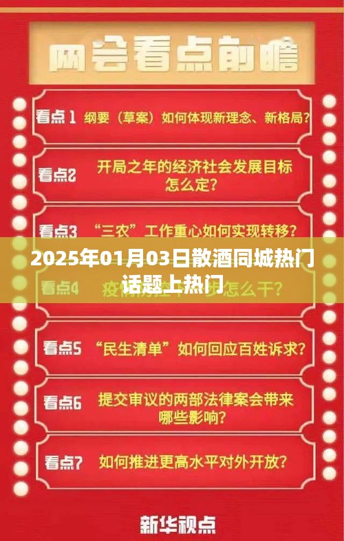 《2025年01月03日散酒同城热门话题上热门》这一主题反映了当代社会的热门趋势和文化现象,散酒文化的兴起为人们带来了全新的生活体验和文化享受,丰富了城市的文化内涵,展望未来,我们期待散酒文化能够在社会中发挥更大的作用,为人们带来更多的美好时光。