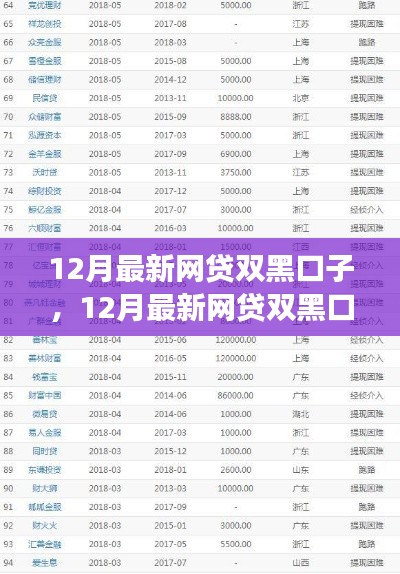 随着金融科技的飞速发展,网贷行业作为互联网金融的一种形态,日益受到广泛关注,时至12月,我们不得不提及一个热门话题——“最新网贷双黑口子”,这里的“双黑口子”指的是在网贷行业中存在的一种现象,即部分平台因监管缺失或自身运营问题陷入困境,甚至出现了逾期不兑付等负面情况,这一现象引发了社会各界的热议,本文旨在深入探讨这一现象的背景、影响,并结合正反双方观点,阐述个人立场及理由。