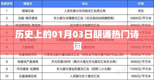 历史上的01月03日,是一个承载着丰富文化内涵的日子,从古代的诗词繁荣到现代的朗诵热潮,这一天见证了诗词艺术的传承和发展,让我们共同珍惜这一文化遗产,通过朗诵的方式,感受诗词的魅力,传承文化的精髓。