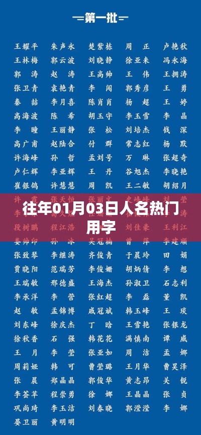 每年的名字流行趋势总能反映出社会的文化、价值观以及时代变迁,本文将围绕“往年01月03日人名热门用字”这一主题,探讨在这一天人们起名时常用的字,以及这些字背后的文化和历史含义。
