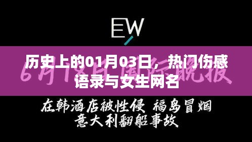 每一个日期都承载着历史的记忆,而01月03日对于许多女生来说,或许有着特殊的情感和记忆,这一天,不少女生会选择用伤感的语录来作为自己的座右铭,或是用与这一天相关的伤感语录来命名自己的网络身份,以下将带你探寻这一天的历史背景,以及那些流行的伤感语录和女生网名的故事。