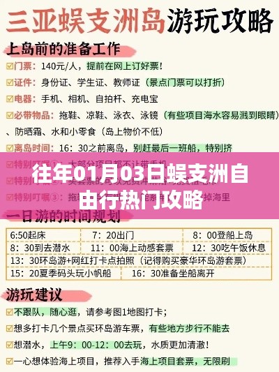 蜈支洲,一个美丽的海岛,每年吸引着无数游客前来探寻其独特的魅力,在1月3日这个特殊的日子,我们将为您呈现一份详尽的自由行热门攻略,助您轻松畅游蜈支洲,留下难忘的回忆。