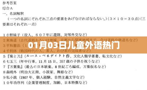《01月03日儿童外语热门》反映了当前社会对儿童外语教育的关注,在全球化背景下,儿童外语教育具有重要意义,家长和教育机构需要紧跟时代潮流,关注最新教育动态,为孩子选择合适的学习方式,培养他们的实际运用能力和综合素质。