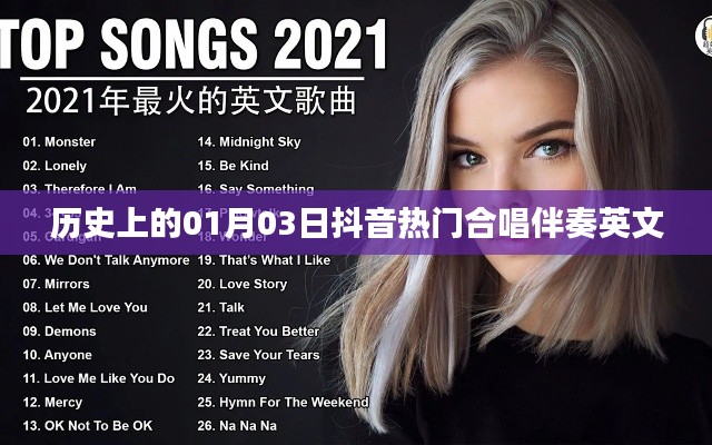 在探讨抖音热门合唱伴奏英文歌曲之前,我们先来了解一下历史上的01月03日,这一天在世界历史上并没有特别重大的事件发生,但在音乐领域,一些歌曲在这一天发布或走红,成为了时代的标志,这些歌曲与抖音的结合,使得它们的影响力更加广泛。