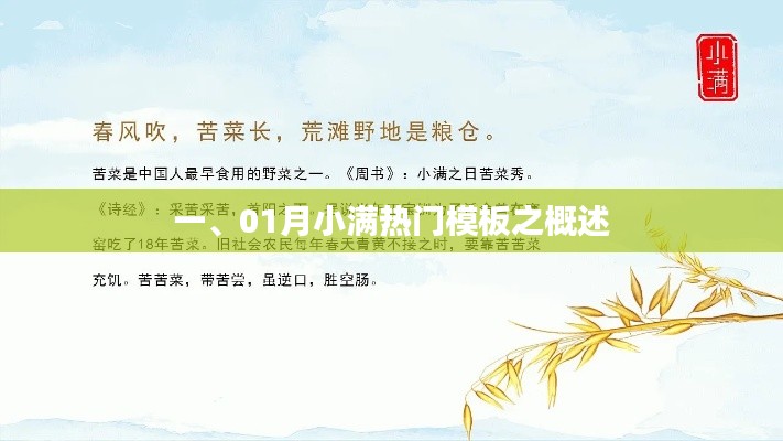 随着科技的飞速发展和互联网的普及,人们对于信息的获取与分享越来越注重时效性和热门性。《01月小满热门模板》应运而生,为广大网友提供了一个关注时下热点、把握流行趋势的窗口,本文将从多个角度对《01月小满热门模板》进行介绍,带领读者了解这一热门模板的魅力所在。