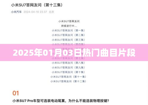 随着时代的进步和音乐产业的发展,每一年的热门曲目都在不断更迭,本文将聚焦于2025年1月3日的热门曲目片段,带你领略那个时刻的音乐风尚和流行元素。