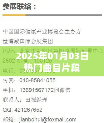 2025年1月3日的热门曲目片段是音乐产业发展的重要体现,它们反映了当时社会的文化趋势和价值观,也推动了音乐产业的创新和发展,这些曲目片段以其独特的音乐风格和富有感染力的节奏,吸引了众多年轻人的关注,成为了当时流行的文化符号,随着音乐产业的不断变革,我们期待更多的优秀音乐作品和热门曲目片段的出现,为我们的生活带来更多的色彩和乐趣。